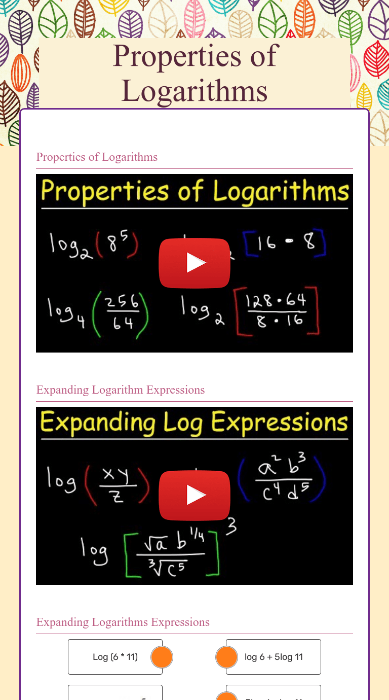 Logarithm Properties Worksheet : Logarithm Meaning Examples Rules Of Logs -. 3.3.3 properties of exponential functions in terms of logarithms the logarithm function plucks the exponent from an expression. How human ears perceive sound can be more accurately described by the logarithm of the intensity rather than directly by the intensity. Is defined in terms of a ratio, it is a unitless quantity, telling you the level of the sound relative to a fixed standard ( ). The units of decibels (db) are used to indicate this ratio is multiplied. For this reason, the properties of exponents translate into properties of logarithms.